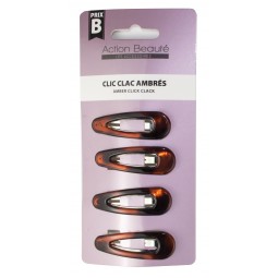 Des barrettes clic clac ambrées, élégantes et pratiques, idéales pour fixer les mèches et apporter une touche chic et naturelle aux coiffures.